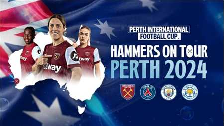 继去年7月取得巨大成功的男足澳大利亚之行后,作为首届珀斯国际足球杯的一部分,我锤女足将前往澳大利亚进行两场比赛,与另外两家英女超俱乐部曼城女足和莱斯特城女足以及法女甲俱乐部巴黎圣日耳曼女足同场竞技。