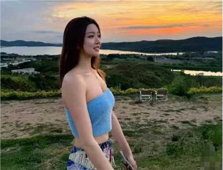 在王鋆赛社交媒体晒出的照片中,有两张照片给人留下深刻印象。其中一张照片上,王鋆赛长发披肩,上身用蓝色的毛巾裹住胸部。下身是一条花色的休闲裤。身材非常傲人。一双大长腿纤细白皙,更是衬托出凹凸有致的身材。在镜头远处,有绿色的植物,也有湖水!不远处的天空中,金灿灿的,像是夕阳西下!不得不承认,景美人更美!