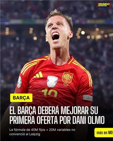 来自西班牙媒体《世界体育报》的最新消息,巴萨已经对莱比锡的26岁西班牙进攻型中场奥尔莫提出了首份报价,但遭到莱比锡拒绝。
