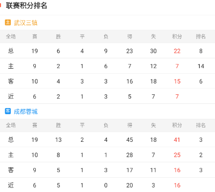 2、客场:在本赛季作客的9轮赛事,成都蓉城取得5胜1平3负的战绩;