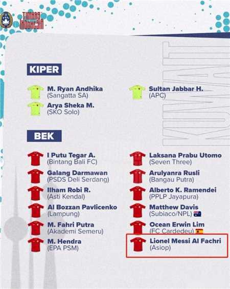 北京时间8月6日,印度尼西亚国家队官方发布u17国少集训名单,一名小球员的姓名与知名球星梅西撞名。
