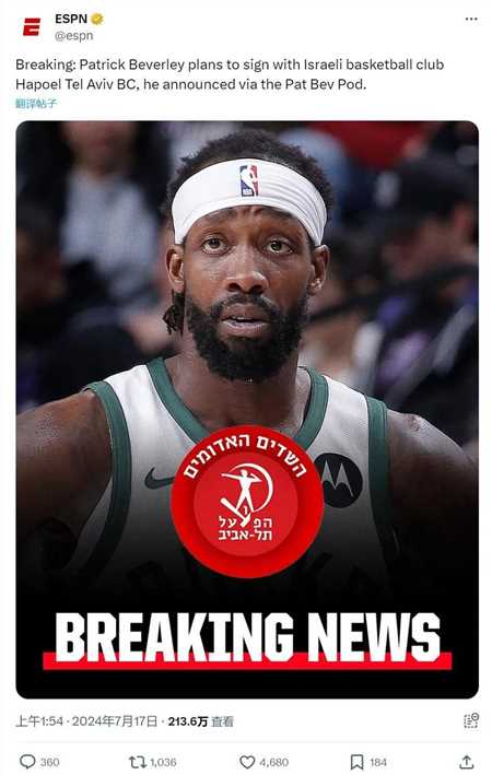 北京时间7月17日,贝弗利在播客中宣布:自己决定与以色列篮球俱乐部hapoel tel aviv签约!贝弗利说:“他们给了我我想要的一切。这份合同报价,我无法拒绝。”今年休赛期,贝弗利拒绝了活塞和火箭的老将底薪,正式离开nba。