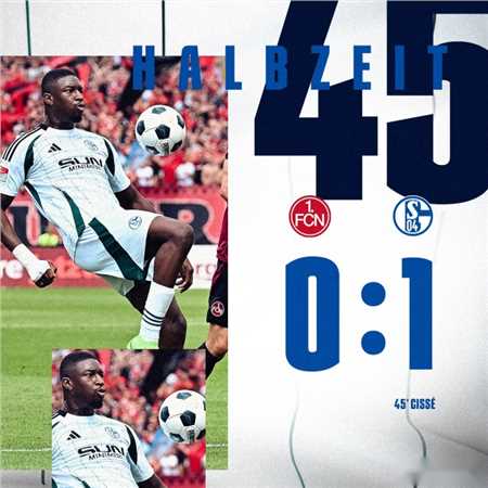 半场结束! 沙尔克 1-0 纽伦堡 西塞处子球!沙伦贝格半场累积两黄被罚下。