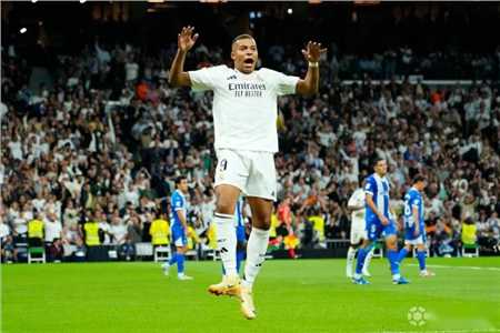 西甲第7轮主场迎战阿拉维斯的比赛中,姆巴佩的进球帮助皇家马德里取得2-0的领先。