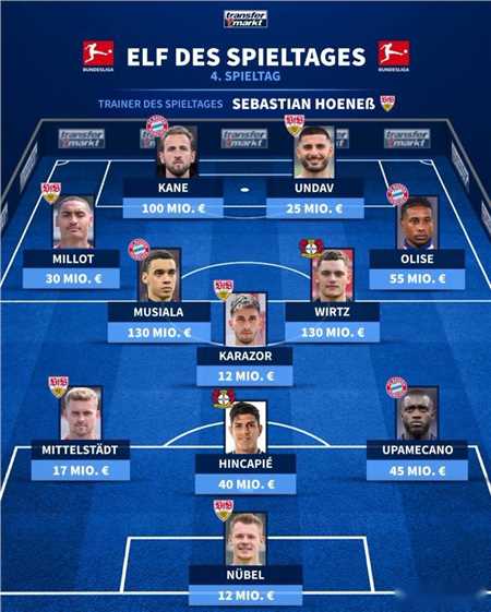 德转德甲本轮最佳阵容:拜仁和斯图加特各四人入选