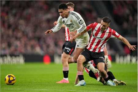 西甲第19轮的一场较量中,毕尔巴鄂竞技和皇家马德里在上半场结束后暂时0-0战平。