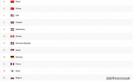 5-16名排名为中国、土耳其、美国、泰国、荷兰、加拿大、多米尼加、塞尔维亚、德国、法国、韩国和保加利亚。根据国际排联给出的奖金额度,第五名获13万美元、第六名获8.5万美元、第七名获6.5万美元和第八名获4万美国。